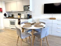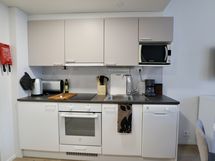 - Laminaattitasot, Astianpesukone, Induktioliesi, Liesituuletin, Erillisuuni, Jääkaappi pakastelokerolla, Tilaa pöydälle, Hyvin säilytystilaa,