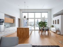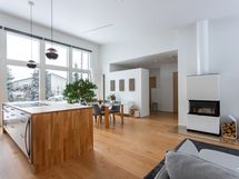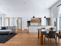 Avaran keittiö-olohuoneen molemmin puolin olevat lattiasta kattoon yltävät ikkunat saavat huoneen kylpemään luonnonvalossa. Keittiön puolelta avautuu näkymä kauniille etupihalle ja olohuoneesta rauhoittavaan metsämaisemaan. Upeaa A la Carte keittiötä hallitsee suuri saareke, jonka taso on massiivitammea. Muuten keittiössä on kvartsitasot. Olohuoneen puolella on Conturan kiertoilmatakka. Lattioissa on tyylikäs Timberwisen tammiparketti.
