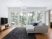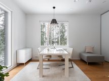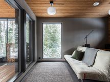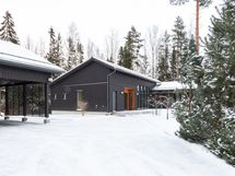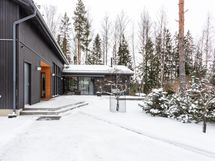 Tämä arkkitehdin suunnittelema vuonna 2016 valmistunut omakotitalo on ajaton kokonaisuus, jossa on yhdistetty estetiikka arjen toimivuuteen. Talon ja erillisen saunarakennuksen yhdistää tilava lasitettu terassi. Päättyvän tien viimeinen tontti rajautuu kahdelta sivulta metsäiseen kaupungin puistoalueeseen.