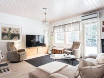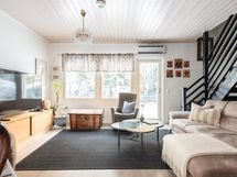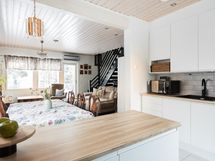 hybridilaminaatit asennettu alakerran lattioihin. Keittiöön uusi laattalattia. Seinät maalattu suurimmilta osin.