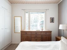 Pesukoneliitäntä on ikkunallisessa kodinhoitohuoneessa. Kodinhoitohuoneessa on myös allaskaappi.