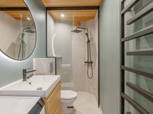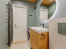 - Pesutilojen varusteet: WC-istuin, suihku, suihkuseinä, pesukoneliitäntä, pesuallas, allaslaatikosto, pyyhekuivain, pesutornille paikka, peili ja bidee-suihku. Pesutilojen kuvaus: Kylpyhuoneremontti 2024,.