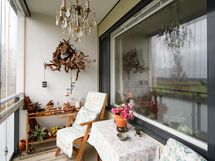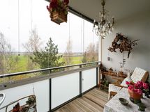 Tilaviin huoneisiin mahtuu hyvin kalusteita, joten sisustaminen on mukavaa. Toisessa makuuhuoneessa vaatehuone. Lasitetulta parvekkeelta on kauniit näkymät peltomaisemiin.