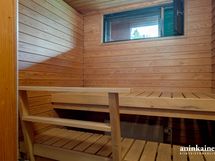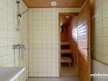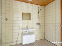 WC: kylpyhuone ja wc samassa tilassa. Suihku, lavuaari, peili, pk-liitäntä, wc-istuin, kaapisto