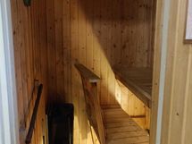 Varusteet: Sähkökiuas. saunapaneeli. Seinämateriaali: Paneeliseinä