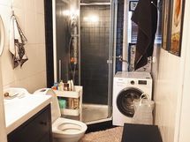 - Suihkukaappi, Tassuamme, Pesukonevalmius, Allaskaappi, Laattalattia, Laattaseinä, Erillinen WC
