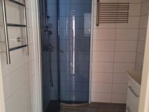 - Suihku, Suihkuseinä, Pesukonevalmius, Peilikaappi, Allaskaappi, Rättipatteri, Laattalattia, Laattaseinä, Lattialämmitys