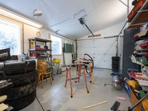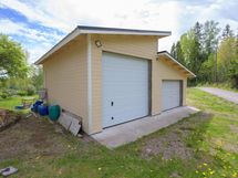 Kahden auton autotalli on uudehko ja siinä on hyvin tilaa harrastaa. Toinen ovi on normaalia korkeampi, joten isompikin auto mahtuu talliin. Paljon säilytystilaa on myös talon ullakolla. Autotallin lämmitys hoituu ilmalämpöpumpulla.