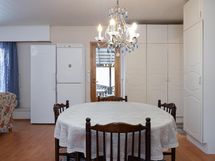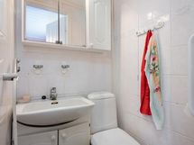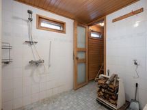 Pesukoneliitäntä, erillinen wc: allaskaapisto, peilikaappi. Kylpyhuone: suihku, sauna, puukiuas
