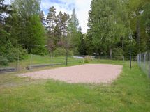 Beach-Volleykenttä verkkoineen, irralliset vaatekaapit, takka (varaava), naulakko