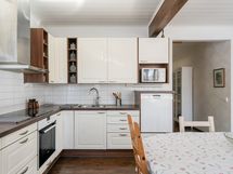 - Liesi: keraaminen. Työtasot: laminaatti. Kylmäsäilytys: jääkaappi, pakastin. Varustus: astianpesukone, liesituuletin / hormi. Puustelli-keittiö