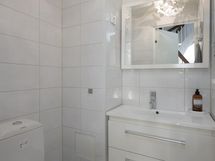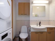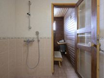 - Erillinen wc: allaskaapisto, wc-istuin. Kylpyhuone: suihku, pesukoneliitäntä, wc-istuin, kaapistot. Sähkösauna.