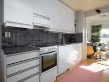 - Kaapistot, jääkaappi/pakastin, astianpesukone, keraaminen liesi, liesituuletin hormiin