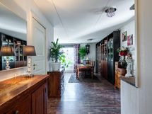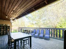 - Suojaisalla pihalla sijaitsee tilava, osittain katettu ja aidattu terassi.