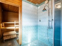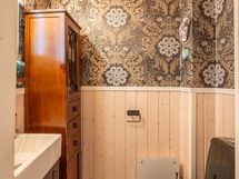 - Pesutilojen varusteet: Suihku, pesukoneliitäntä, lattialämmitys ja suihkuseinä. Pesutilojen kuvaus: Pesuhuoneesta on käynti suoraan ulos lännen puoleiselle takapihalle. Erillisten WC:n lukumäärä: 1. Erillisen WC:n varusteet: WC-istuin, peilikaappi, peili, pesuallas ja allaskaappi.