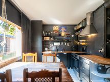 - Keittiön varusteet: Liesi, astianpesukone, liesituuletin, jääkaappipakastin ja uuni. Liesi: Keraaminen liesi. Työtason materiaali: Puu.