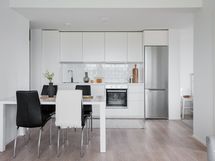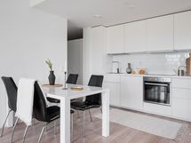 Asunnon sisätilat on suunniteltu huomioiden sekä estetiikka että toiminnallisuus. Vaaleat sisustussävyt luovat valoisan ja rauhoittavan tunnelman, joka sopii erinomaisesti nykypäivän vaatimuksiin. Kolme huonetta tarjoavat monipuoliset mahdollisuudet niin perheelle kuin tilaa arvostavalle pariskunnallekin. Avokeittiö on varustettu laadukkailla kodinkoneilla ja se yhdistyy saumattomasti asunnon oleskelutiloihin, luoden täydellisen ympäristön sekä arjen että juhlan viettoon.