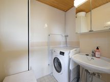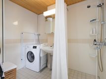 - Sauna. Kylpyhuone: suihku, peilikaappi, pesukoneliitäntä. Erillinen wc: peili, kaappi, lavuaari ja allaskaapisto (uusittu 2025).