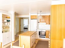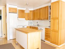 - Keittiön varusteet: Jääkaappipakastin, erillisuuni (Kiertoilma ja grillivastukset), liesituuletin, astianpesukone, keittiösaareke ja liesi. Liesi: Keraaminen liesi. Työtason materiaali: Laminaatti. Puiset kaapistot + irrallinen saareke.