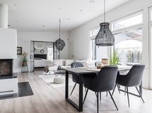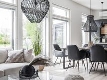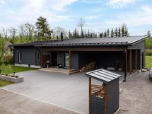 - Asuinpinta-ala 135 m², kerrosala 173 m². Lisäksi autokatos kahdelle autolle n. 50 m², varasto n. 15 m², 2 x lasiterassi n. 18 m² ja n. 15 m².