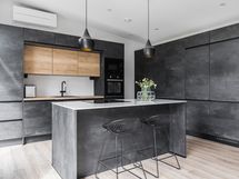 - Varusteet: jääkaappi, pakastin, integroidut kodinkoneet, integroitu astianpesukone. Työtaso: puutaso. Liesi: induktioliesi, erillisuuni, mikroaaltouuni, integroitu liesi. Integroiduilla kodinkoneilla varustettu käytännöllinen keittiö, missä saareke keraamisella laatalla ja sähköpistokkeilla. Lisäksi aamiaiskaappi ja viinikaappi. Induktioliedessä integroitu liesituuletin. Kalusteisiin upotetut täyskorkeat jääkaappi ja pakastin.