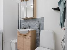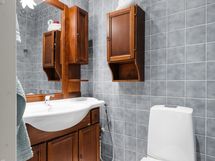 - Pesutilojen kuvaus: Suihkuhuone maalattu laattojen päälle. Kylpyhuone on teknisen käyttöikänsä päässä ja uusimiseen on varauduttava. Varustus: lattialämmitys, suihku, kiinteät valaisimet. Lattia: laatta. Seinät: kaakeli. Erillisten WC:n lukumäärä: 2. Erillisen WC:n kuvaus: Varustus: peilikaappi, bidee-suihku. Lattia: laatta. Seinät: kaakeli.