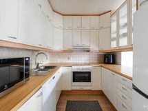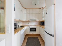 - Varustus: jääkaappi/pakastin, liesituuletin, astianpesukone, kiinteät valaisimet. Liesi: sähköliesi. Työtasot: laminaatti.
