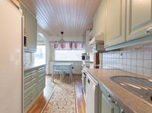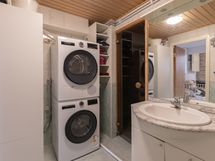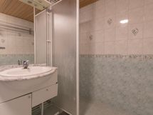 Varusteet: pesukoneliitäntä, lattialämmitys, suihku, kylpyhuonekaapistot. Lämminvesivaraaja uusittu 2021