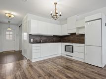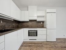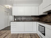 - Varusteet: jääkaappipakastin, integroitu astianpesukone. Liesi: keraaminen liesi, liesituuletin hormilla, erillisuuni