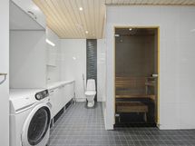 - Varusteet: WC, suihku, pesukoneliitäntä, kylpyhuonekaapistot, peilikaappi