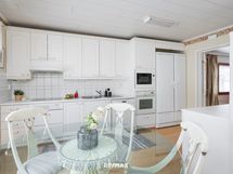 - Keittiön varusteet: Jääkaappi, erillinen pakastin, liesi, leivinuuni ja erillisuuni. Liesi: Keraaminen liesi. Työtason materiaali: Puu. Valoisa keittiö, jota hallittsee komea leivinuuni. Tärkeä osa talon lämmitystä mutta siellä myös hautuu niin uunipuurot kuin hirvipaistit.