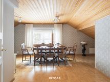 Muita tiloja on noin 201,4 m2 sis. kellarissa työ-ja askertelutilat, tek.tila, wc, sauna, psh, pukutila ( matalaa alle 160cm kerrosalaa vintit yläkerrassa) ym.