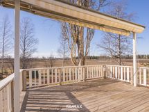- Tilava terassi, jossa on markiisi.