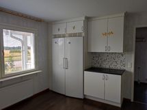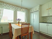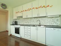 - Tilaa isolle ruokapöydälle, Paljon kaappitilaa, Suuri tiskipöytä, Paljon työskentelytilaa, Puutasot, Laminaattitasot, Astianpesukone, Keraaminen liesi, Liesituuletin, Jääkaappi, Pakastin