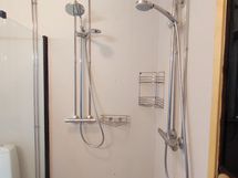 - Suihku, Suihkuseinä, Useita suihkuja, Pesukone, Kuivausrumpu, Peilikaappi, Erillinen WC, Lattialämmitys