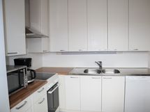 Kodinkoneina jääkaappipakastin, liesi, liesituuletin sekä astianpesukone.