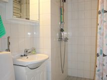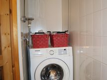 - Pesutilojen kuvaus: Laatoitettu pesuhuone, jossa suihku, wc ja pesukoneliitäntä. Sauna tehty 2002.