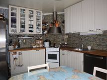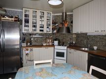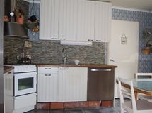Keittiö on remontoitu 2003. Kodinkoneina side by side -jääkaappipakastin, astianpesukone, liesi sekä -tuuletin.