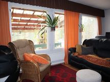 Olohuoneesta on kulku takapihan terassille.