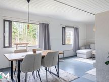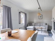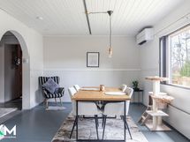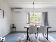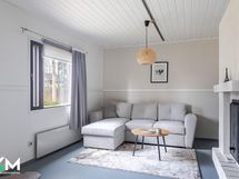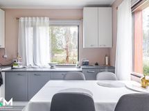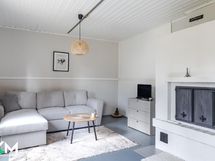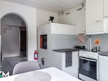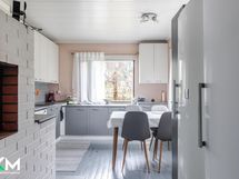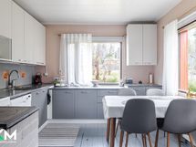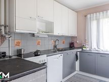 - Jääkaappi (uusittu 2017), pakastin (uusittu 2023), astianpesukone, liesituuletin hormiin, keraaminen liesi (uusittu 2016), leivinuuni, puuliesi