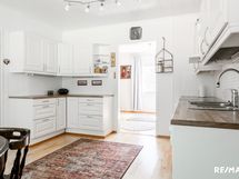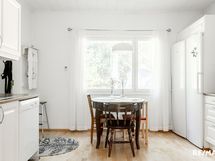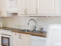 - Keittiö tehty kokonaan uusiksi 2012. Täyskorkeat jääviileäkaappi ja pakastekaappi, liesi, liesituuletin, astianpesukone. Hyvä tila ruokapöydälle, keittiön ikkuna etupihan puolelle.
