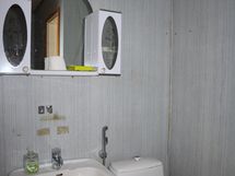 Asuinkerroksessa kaksi kylpyhuonetta muuovipinnoin, joissa myös wc:t.