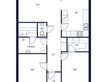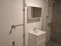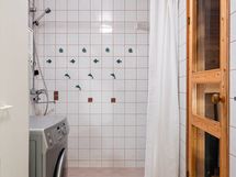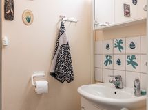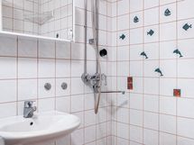 Pesutilojen varusteet: Suihku ja pesukoneliitäntä. Pesutilojen kuvaus: Tulossa kylpyhuoneremontti. Arvio 10 000€. Erillisten WC:n lukumäärä: 1. Erillisen WC:n varusteet: WC-istuin, peili, allaskaappi ja pesuallas.