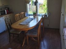 Keittiön varusteet: Jääkaappipakastin, liesi, uuni ja astianpesukone. Liesi: Valurautaliesi. Työtason materiaali: Laminaatti. -Sähköliesi, liesituuletin, astianpesukone, jääkaappi/pakastinkaappi