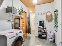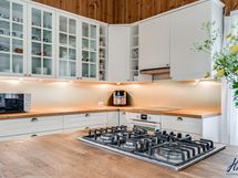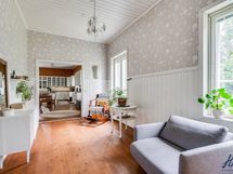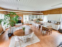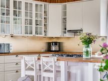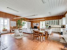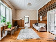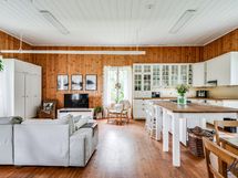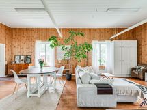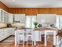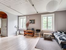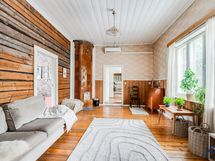 Hirsitalon viehätysvoima on sen ajattomuudessa. Talossa on avarat huoneet, joissa on korkeita kattoja ja alkuperäisiä yksityiskohtia, jotka kertovat tarinaa menneistä ajoista. Valoisa ja suuri n. 70 m²:n ja 2016 remontoitu keittiö tarjoaa jotain, jota ei yksinkertaisesti voi verrata muihin. Keittiön sydämessä on tilaa yhteisiin hetkiin, ja se on suunniteltu niin, että ruoanlaitto muuttuu nautinnolliseksi kokemukseksi. Olipa kyseessä arkinen illallinen tai juhlavampi tilaisuus, tämä keittiö on paikka, jossa luovuus ja yhdessäolo kukoistavat.