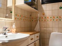 - Sauna, sähkökiuas, kylpyhuone, erillinen wc, suihku, peilikaappi erillisessä wc:ssä, kaapit, allaskaappi, pesukoneliitäntä kodinhoitohuoneessa, lattialämmitys kylpyhuoneessa, saunassa ja kodinhoitohuoneessa, kiinteät valaisimet.