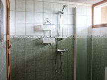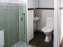 Varustus: suihkuseinä, pesukoneliitäntä, wc-istuin, suihku.