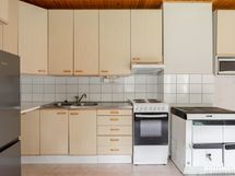 - Jääkaappi/ pakastin, uuni, liesi, liesituuletin, mikroaaltouuni, puuhella, jossa leivinuuni.