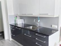 Laminaattitasot, Astianpesukone, Pesukoneliitos, Liesi tai uuni erikseen, Induktioliesi, Liesikupu, Jää-pakastinkaappi, Paljon työskentelytilaa, Paljon kaappitilaa