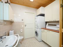 Pesutilojen varusteet: WC-istuin, suihku, pesukoneliitäntä, lattialämmitys, peili, pesuallas ja bidee-suihku. Erillisten WC:n lukumäärä: 1. Erillisen WC:n varusteet: WC-istuin, peili, pesuallas, allaskaappi ja bidee-suihku. Erillisen WC:n kuvaus: v. 2013 laatoitettu.